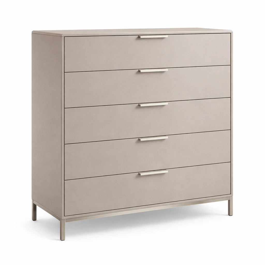 Cajonera de MDF con 5 cajones beige y estructura metálica 90x40x110 cm