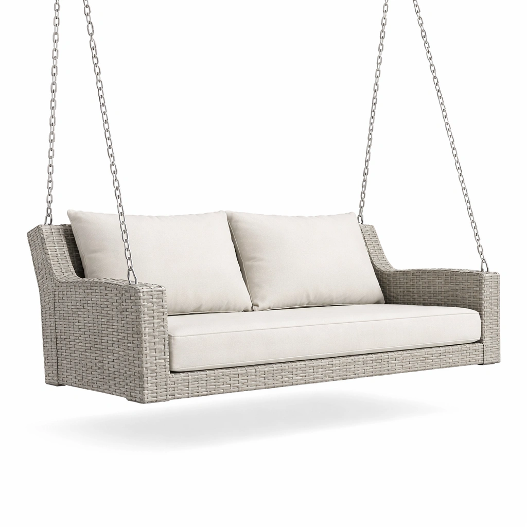 Columpio de porche de ratán sintético beige con cojines